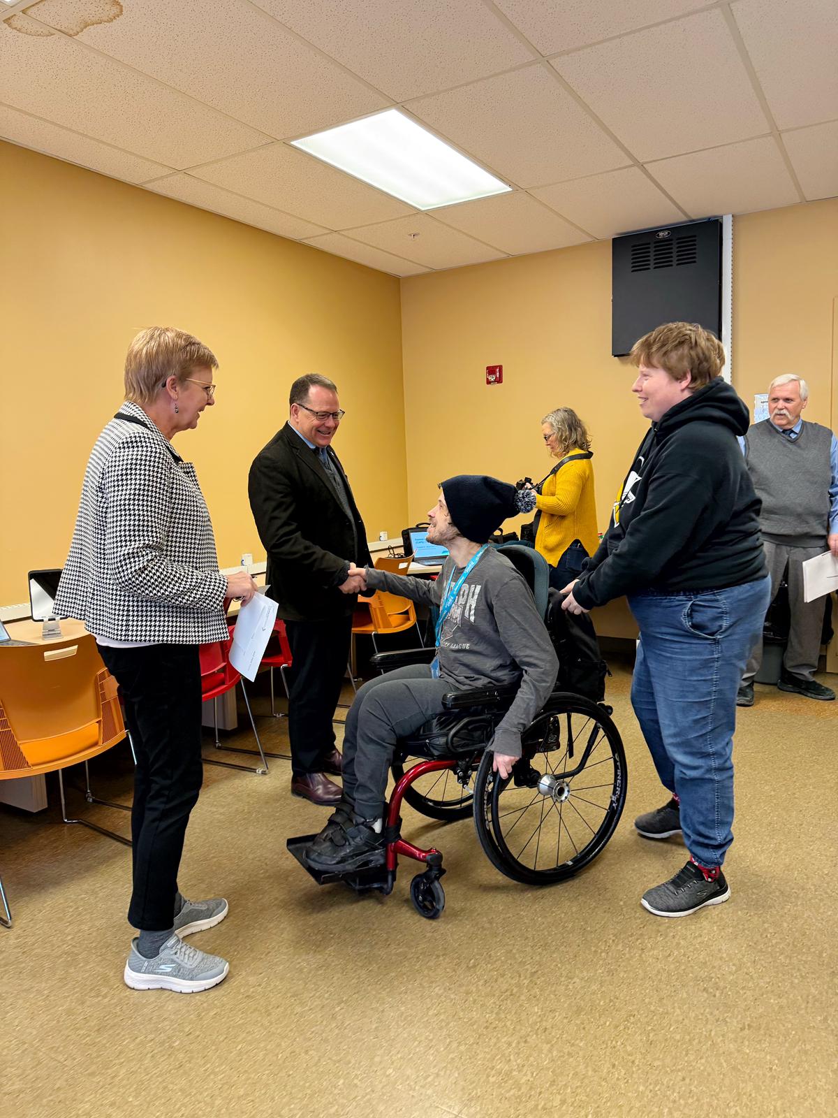 Guelph, ON – On Wednesday, local MPP Mike Schreiner met with the team at Community Living Guelph Wellington to celebrate the impact of a $98,400 Seed grant they received from the provincial government’s Ontario Trillium Foundation (OTF). The grant funded the launch of the organization’s new Learning Lab.